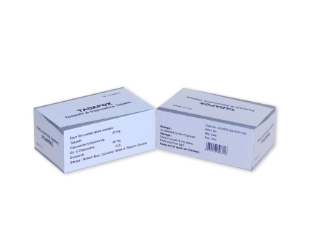 Detta läkemedel kommer ut i tabletterna för oral användning. Till köpet det fins bara en Tadapox form. Varje Tadapox tablettinnehåller 20 mg Tadalafil och 60 mg Dapoksetin.